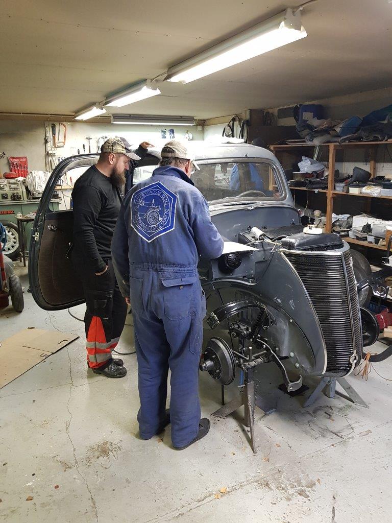 Den senaste i raden av veteranbilar som renoverats av Jakobstadsnejdens Veteranbilssällskaps talkogäng är en Ford Eifel från 1939.